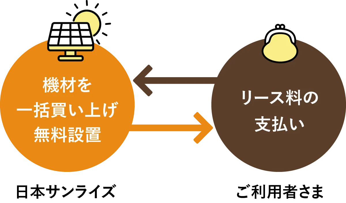 従来150万円以上かかる太陽光発電設備を日本サンライズが負担!
