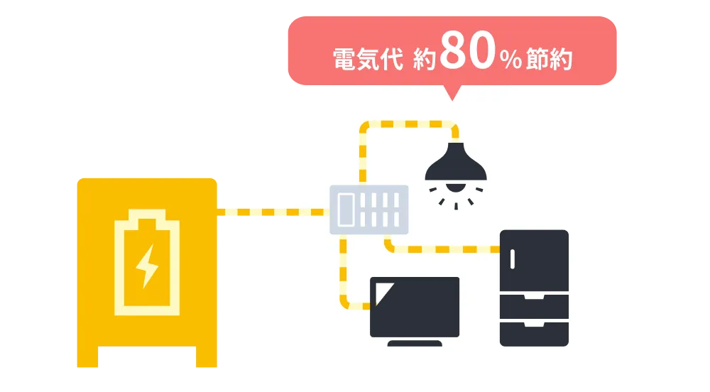 毎月の電気代を大幅削減昼間に太陽光で発電した電気を蓄電池に蓄え、夜間にその電気を使用することで、電気代を大幅に節約することが可能です。