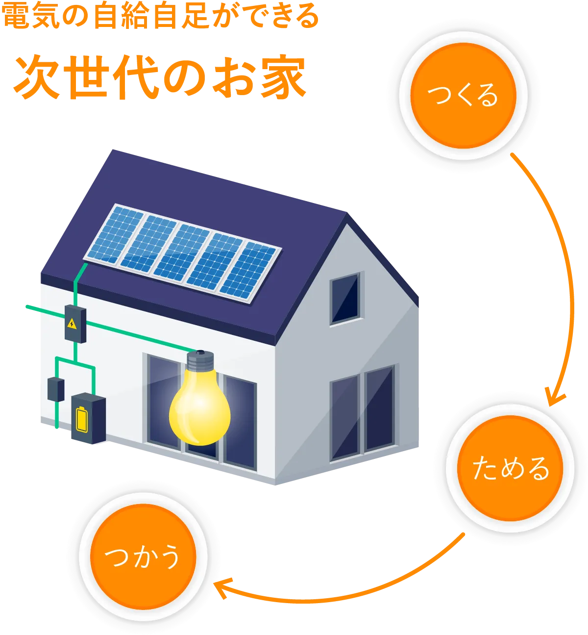 太陽のエネルギーで「発電」日中の発電を貯めて使える「蓄電」で光熱費0円を実現。